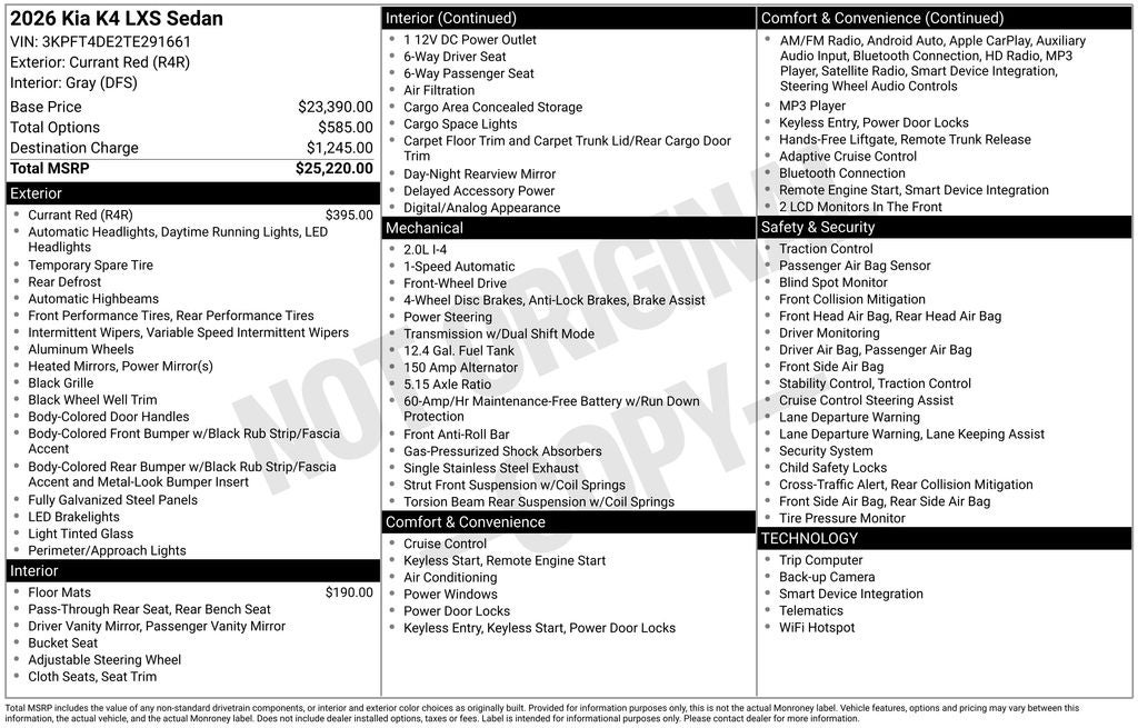 - Vehicle Name: Kia K4