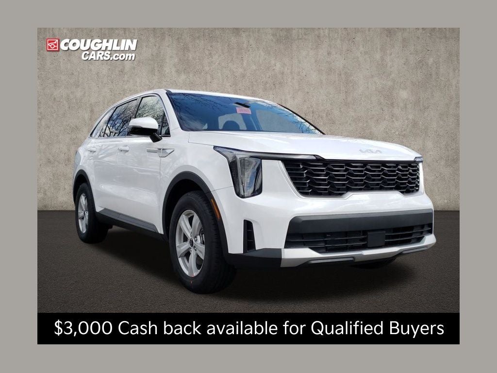 Equipped with 17 Alloy Wheels, 3rd row seats: split-bench, 4-Wheel Disc Brakes, 6 Speakers, ABS brakes, Air Conditioning, All Weather Floor Mats, Alloy wheels, AM/FM radio: SiriusXM, Apple CarPlay & Android Auto, Auto High-beam Headlights, Brake assist, Bumpers: body-color, Cloth Seat Trim, Delay-off headlights, Driver door bin, Driver vanity mirror, Dual front impact airbags, Dual front side impact airbags, Electronic Stability Control, Emergency communication system: 911 Connect, Exterior Parking Camera Rear, Four wheel independent suspension, Front anti-roll bar, Front Bucket Seats, Front Center Armrest, Front reading lights, Fully automatic headlights, Heated door mirrors, Illuminated entry, Knee airbag, Leather Shift Knob, Leather steering wheel, Low tire pressure warning, Occupant sensing airbag, Outside temperature display, Overhead airbag, Overhead console, Panic alarm, Passenger door bin, Passenger vanity mirror, Power door mirrors, Power steering, Power windows, Radio data system, Radio: AM/FM Standard Sound System, Rear anti-roll bar, Rear reading lights, Rear seat center armrest, Rear side impact airbag, Rear window defroster, Rear window wiper, Remote keyless entry, Security system, Speed control, Speed-sensing steering, Split folding rear seat, Spoiler, Steering wheel mounted audio controls, Tachometer, Telescoping steering wheel, Tilt steering wheel, Traction control, Trip computer, Turn signal indicator mirrors, and Variably intermittent wipers. Price includes: $2500 - Kia Customer Cash. Exp. 03/31/2026 $500 - Military Program. Exp. 03/31/2026 KFA Dealer Choice Bonus Cash Program Not all customers may qualify for this offer. Please contact us with questions. Customer must finance through KFA