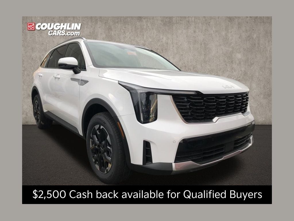 Equipped with AWD, 3rd row seats: split-bench, 4-Wheel Disc Brakes, 6 Speakers, ABS brakes, Air Conditioning, Alloy wheels, AM/FM radio: SiriusXM, Apple CarPlay & Android Auto, Auto High-beam Headlights, Automatic temperature control, Brake assist, Bumpers: body-color, Cargo Cover, Cargo Net, Carpet Cargo Mat with Seatback Protection, Carpeted Floor Mats, Cross Bars, Delay-off headlights, Driver door bin, Driver vanity mirror, Dual front impact airbags, Dual front side impact airbags, Electronic Stability Control, Emergency communication system: 911 Connect, Exterior Parking Camera Rear, Four wheel independent suspension, Front anti-roll bar, Front Bucket Seats, Front Center Armrest, Front dual zone A/C, Front reading lights, Fully automatic headlights, Heated door mirrors, Heated Front Bucket Seats, Heated front seats, Illuminated entry, Knee airbag, Leather Shift Knob, Leather steering wheel, Low tire pressure warning, Occupant sensing airbag, Outside temperature display, Overhead airbag, Overhead console, Panic alarm, Passenger door bin, Passenger vanity mirror, Power door mirrors, Power driver seat, Power steering, Power windows, Radio data system, Radio: AM/FM Standard Sound System, Rear anti-roll bar, Rear reading lights, Rear seat center armrest, Rear Seat Entertainment System, Rear side impact airbag, Rear window defroster, Rear window wiper, Remote keyless entry, Security system, Speed control, Speed-sensing steering, Split folding rear seat, Spoiler, Steering wheel mounted audio controls, SynTex Artificial Leather Seat Trim, Tachometer, Telescoping steering wheel, Tilt steering wheel, Traction control, Trip computer, Turn signal indicator mirrors, Variably intermittent wipers, and Wheels: 18 Gloss Black Alloy. Price includes: $2000 - Kia Customer Cash. Exp. 03/02/2026 $500 - Military Program. Exp. 03/02/2026