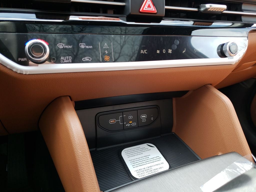 Equipped with X-Line Premium Package (LED Interior Lighting, Panoramic Sunroof, and Smart Power Liftgate), AWD, 4-Wheel Disc Brakes, 6 Speakers, ABS brakes, Air Conditioning, All Weather Floor Mats, Alloy wheels, AM/FM radio, Auto High-beam Headlights, Automatic temperature control, Brake assist, Bumpers: body-color, Delay-off headlights, Driver door bin, Driver vanity mirror, Dual front impact airbags, Dual front side impact airbags, Electronic Stability Control, Emergency communication system: Kia Connect (includes 1 year free trial), Four wheel independent suspension, Front anti-roll bar, Front Bucket Seats, Front Center Armrest, Front dual zone A/C, Fully automatic headlights, Garage door transmitter, Heated door mirrors, Heated Front Bucket Seats, Heated front seats, Illuminated entry, Leather steering wheel, Low tire pressure warning, Occupant sensing airbag, Outside temperature display, Overhead airbag, Overhead console, Panic alarm, Passenger door bin, Passenger vanity mirror, Power door mirrors, Power driver seat, Power steering, Power windows, Radio: AM/FM/HD Audio System, Rain sensing wipers, Rear anti-roll bar, Rear seat center armrest, Rear side impact airbag, Rear window defroster, Rear window wiper, Remote keyless entry, Security system, Speed control, Speed-sensing steering, Split folding rear seat, Spoiler, Steering wheel mounted audio controls, Syntex Premium Leatherette Seat Trim, Tachometer, Telescoping steering wheel, Tilt steering wheel, Traction control, Trip computer, Turn signal indicator mirrors, Variably intermittent wipers, and Wheels: 19 x 7.5J Gloss Black Alloy. Price includes: $500 - Military Program. Exp. 05/04/2026