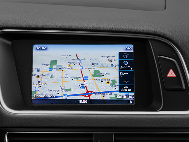Equipped with Leather, 10 Speakers, 2.84 Axle Ratio, 4-Wheel Disc Brakes, 8.0J x 18 5-Spoke-V-Design Wheels, ABS brakes, Air Conditioning, Alloy wheels, AM/FM radio: Sirius, Automatic temperature control, Brake assist, Bumpers: body-color, CD player, Delay-off headlights, Driver door bin, Driver vanity mirror, Dual front impact airbags, Dual front side impact airbags, Electronic Stability Control, Four wheel independent suspension, Front anti-roll bar, Front Bucket Seats, Front Center Armrest, Front dual zone A/C, Front fog lights, Front reading lights, Garage door transmitter: HomeLink, Genuine wood console insert, Genuine wood dashboard insert, Genuine wood door panel insert, Heated door mirrors, Illuminated entry, Leather Seating Surfaces, Leather Shift Knob, Leather steering wheel, Low tire pressure warning, Occupant sensing airbag, Outside temperature display, Overhead airbag, Overhead console, Panic alarm, Passenger door bin, Passenger vanity mirror, Power door mirrors, Power driver seat, Power Front Bucket Seats, Power passenger seat, Power steering, Power windows, Radio data system, Radio: Audi MMI Plus System w/6.5 Color Screen, Rain sensing wipers, Rear air conditioning, Rear anti-roll bar, Rear fog lights, Rear reading lights, Rear seat center armrest, Rear window defroster, Rear window wiper, Remote keyless entry, Roof rack, Security system, Speed control, Speed-sensing steering, Speed-Sensitive Wipers, Split folding rear seat, Spoiler, Steering wheel mounted audio controls, Tachometer, Telescoping steering wheel, Tilt steering wheel, Traction control, Trip computer, Turn signal indicator mirrors, and Variably intermittent wipers.