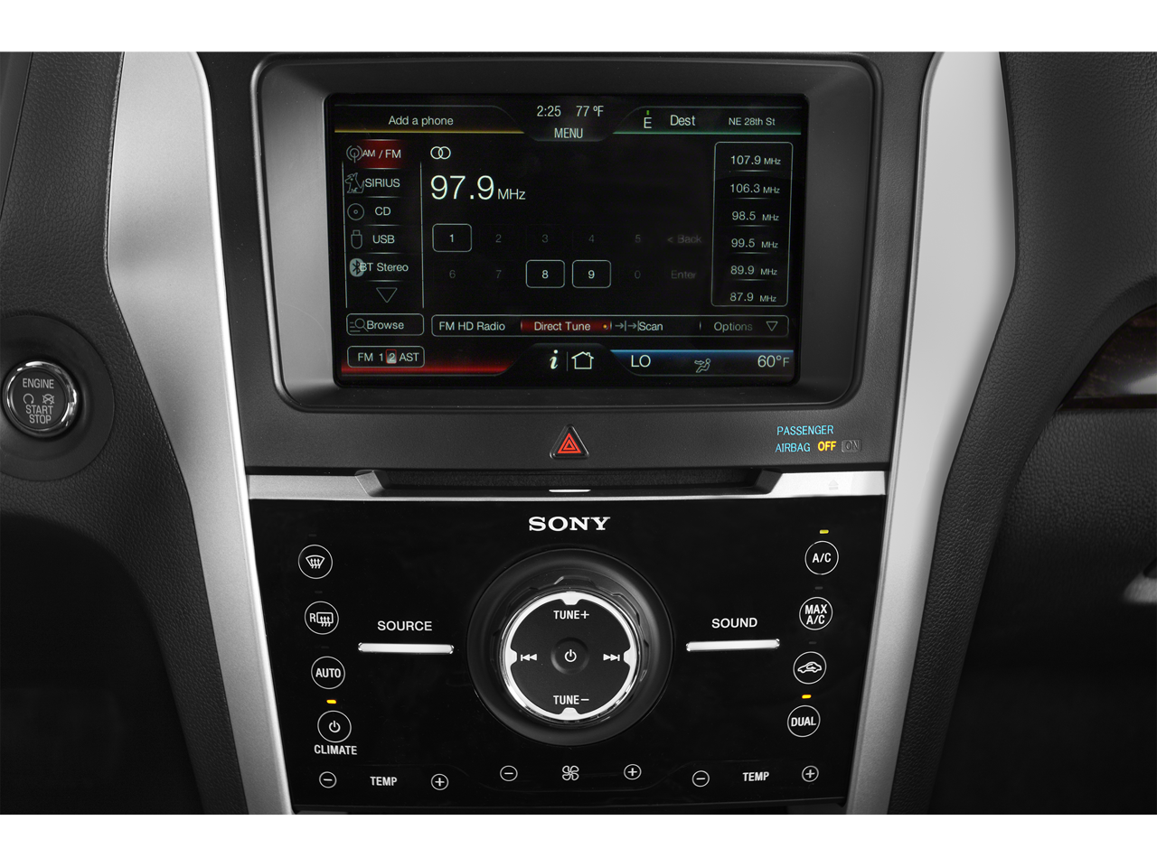 Equipped with Equipment Group 301A (Heated Steering Wheel, Power Liftgate, Power Tilt/Telescoping Steering Wheel, and Voice-Activated Navigation System), Luxury Seating Package (Perf Leather-Trimmed Heated/Cooled Bucket Seats and PowerFold 3rd Row Seat), 4WD, 12 Speakers, 20 Painted Aluminum Wheels, 20 Polished Aluminum Wheels, 3.65 Axle Ratio, 3rd row seats: split-bench, 4-Wheel Disc Brakes, ABS brakes, Adaptive Cruise Control & Collision Warning, Adjustable pedals, Air Conditioning, All Weather Floor Mats, Alloy wheels, AM/FM radio: SiriusXM, Auto-dimming Rear-View mirror, Automatic temperature control, Brake assist, Bumpers: body-color, CD player, Compass, Delay-off headlights, Driver door bin, Driver vanity mirror, Dual front impact airbags, Dual front side impact airbags, Electronic Stability Control, Exterior Parking Camera Rear, Four wheel independent suspension, Front anti-roll bar, Front Bucket Seats, Front Center Armrest, Front dual zone A/C, Front fog lights, Front reading lights, Fully automatic headlights, Garage door transmitter: HomeLink, Heated door mirrors, Heated front seats, Heated rear seats, Illuminated entry, Knee airbag, Leather-Trimmed Heated Bucket Seats, License Plate Bracket, Low tire pressure warning, Memory seat, Occupant sensing airbag, Outside temperature display, Overhead airbag, Overhead console, Panic alarm, Passenger door bin, Passenger vanity mirror, Pedal memory, Power door mirrors, Power driver seat, Power passenger seat, Power steering, Power windows, Premium audio system: Sony, Radio data system, Radio: Sony Audio System w/12-Speakers, Rear air conditioning, Rear anti-roll bar, Rear Parking Sensors, Rear reading lights, Rear seat center armrest, Rear window defroster, Rear window wiper, Remote keyless entry, Roof rack: rails only, Security system, Speed control, Speed-sensing steering, Speed-Sensitive Wipers, Split folding rear seat, Spoiler, Steering wheel mounted audio controls, SYNC w/MyFord Touch, Tachometer, Telescoping steering wheel, Tilt steering wheel, Traction control, Trip computer, Turn signal indicator mirrors, and Variably intermittent wipers.
