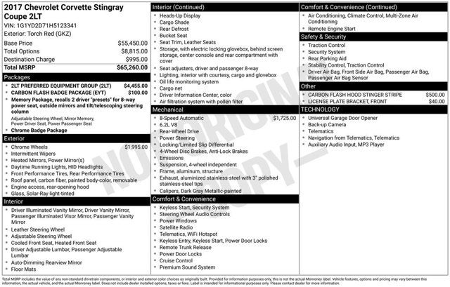 Torch Red 2017 Chevrolet Corvette Stingray 2LT CARFAX One-Owner. Odometer is 11101 miles below market average! 15/26 City/Highway MPG