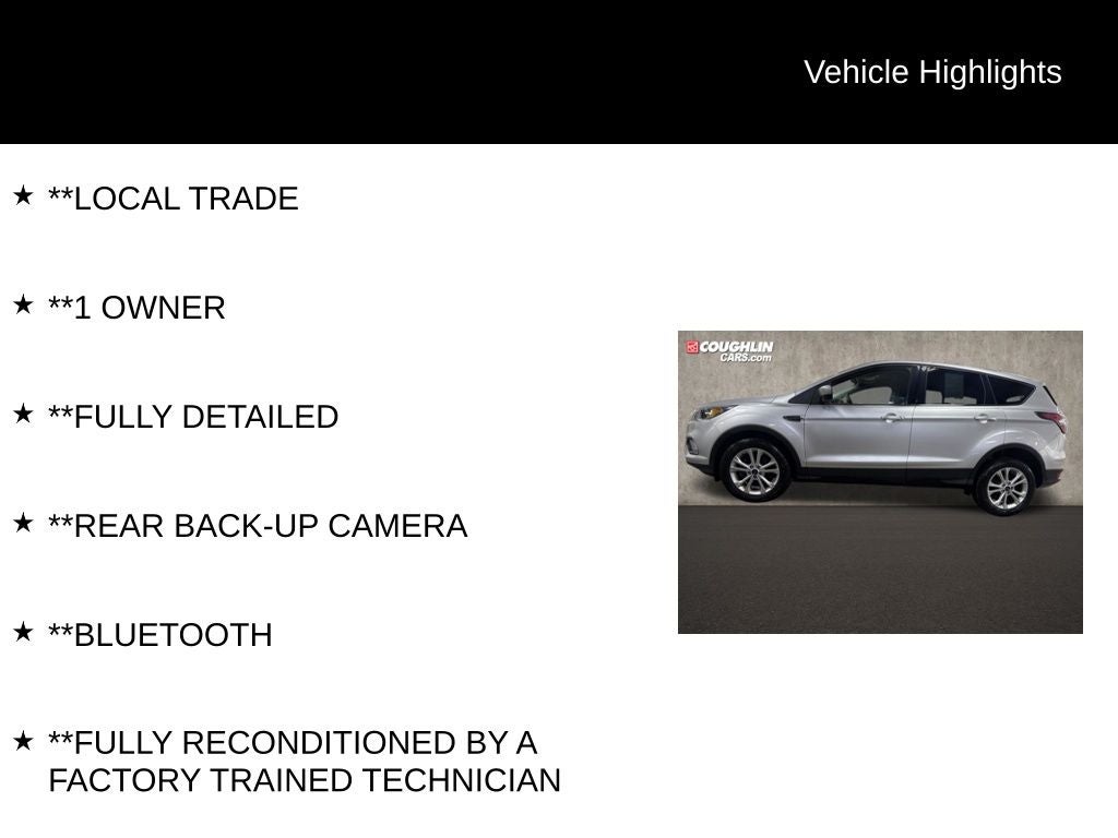 Whether you're looking for a capable family SUV or a versatile daily driver, this 2017 Ford Escape SE is an exceptional choice. Experience the perfect balance of performance, technology, and style that this vehicle has to offer.