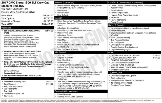 White Frost Tricoat 2017 GMC Sierra 1500 SLT