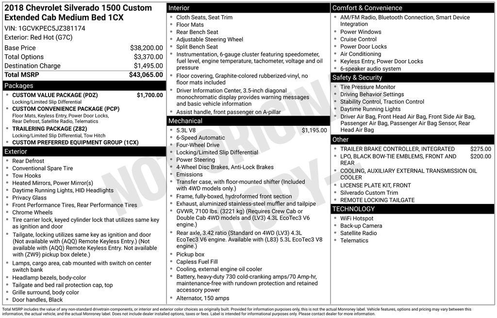 Red Hot 2018 Chevrolet Silverado 1500 Custom Odometer is 32938 miles below market average!