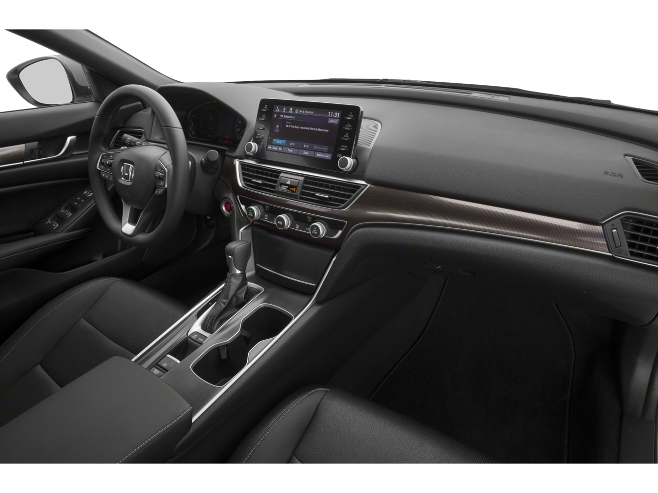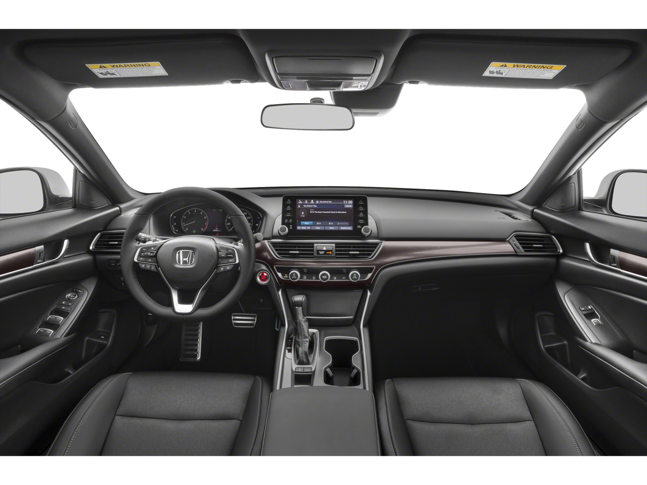 Cloth, 4-Wheel Disc Brakes, 8 Speakers, ABS brakes, Air Conditioning, Alloy wheels, AM/FM radio, Apple CarPlay/Android Auto, Auto High-beam Headlights, Automatic temperature control, Brake assist, Bumpers: body-color, Cloth Seat Trim, Delay-off headlights, Driver door bin, Driver vanity mirror, Dual front impact airbags, Dual front side impact airbags, Electronic Stability Control, Emergency communication system: HondaLink, Exterior Parking Camera Rear, Four wheel independent suspension, Front anti-roll bar, Front Bucket Seats, Front Center Armrest, Front dual zone A/C, Front fog lights, Front reading lights, Fully automatic headlights, Illuminated entry, Knee airbag, Leather Shift Knob, Leather steering wheel, Low tire pressure warning, Occupant sensing airbag, Outside temperature display, Overhead airbag, Overhead console, Panic alarm, Passenger door bin, Passenger vanity mirror, Power door mirrors, Power driver seat, Power steering, Power windows, Radio data system, Radio: 180-Watt AM/FM Audio System, Rear anti-roll bar, Rear seat center armrest, Rear window defroster, Remote keyless entry, Security system, Speed control, Speed-sensing steering, Speed-Sensitive Wipers, Split folding rear seat, Spoiler, Steering wheel mounted audio controls, Tachometer, Telescoping steering wheel, Tilt steering wheel, Traction control, Trip computer, Variably intermittent wipers, and Wheels: 19 Machine-Finished Alloy w/Black Inserts.