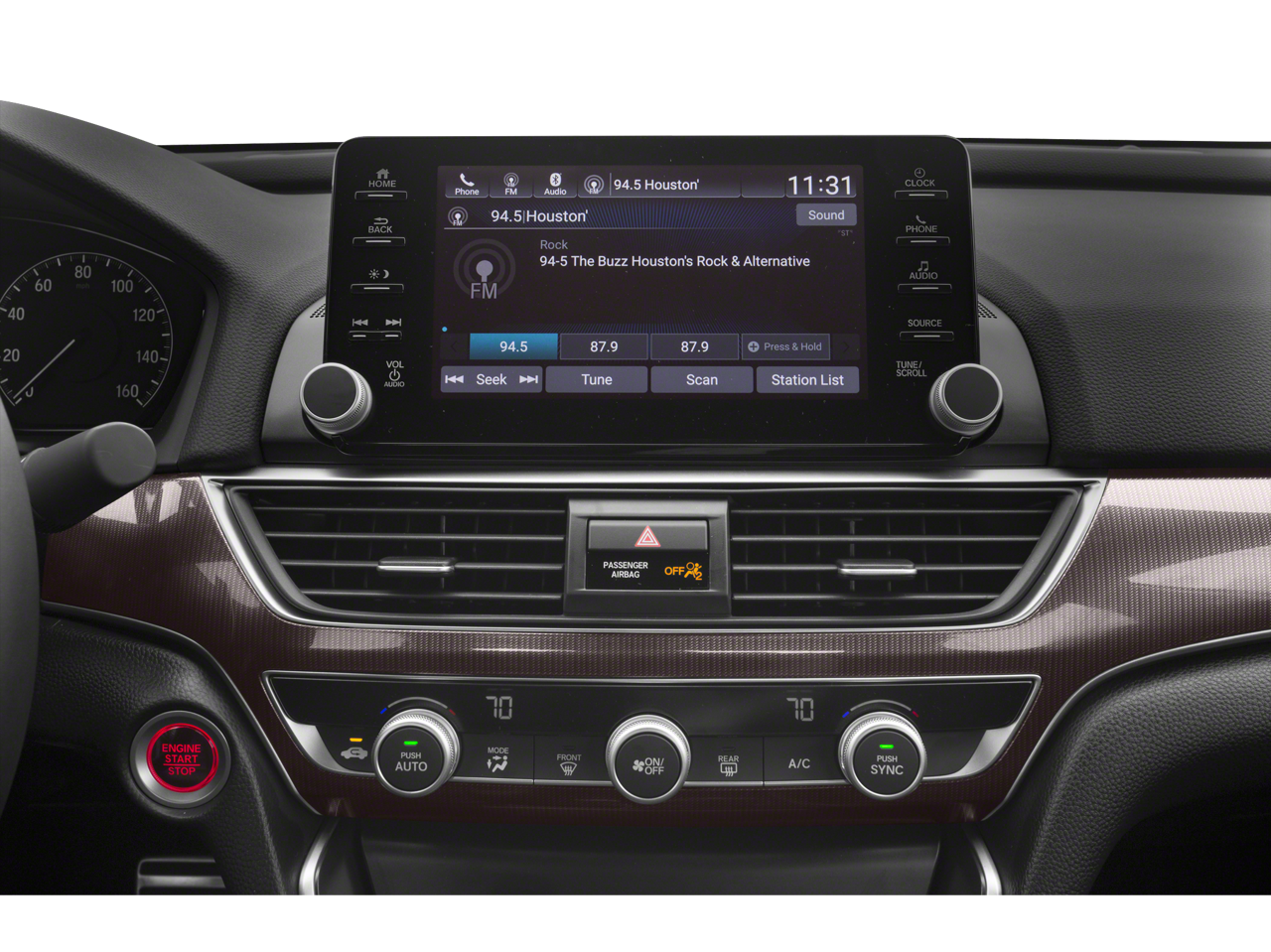 • Radio: 180-Watt AM/FM Audio System -inc: 8 speakers, 8" Display Audio w/high-resolution (720P) electrostatic touch-screen, knobs and hard keys for primary controls and customizable feature settings, Bluetooth® HandsFreeLink, Bluetooth® streaming audio, Pandora compatibility, SMS text message function, radio data system (RDS), speed-sensitive volume compensation (SVC), USB smartphone/audio interface w/2.5-amp port in front, HondaLink, Apple CarPlay integration, Android Auto integration, illuminated steering wheel-mounted audio controls and fin-type roof-mounted antenna