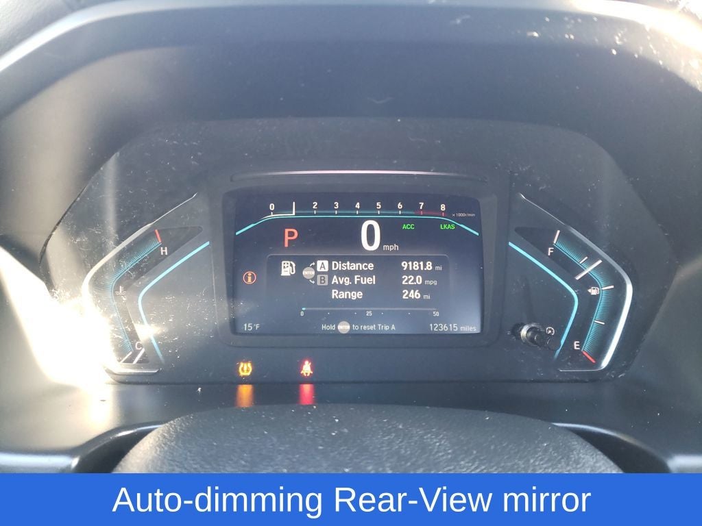 Alloy wheels, Apple CarPlay/Android Auto, Auto-dimming Rear-View mirror, Blind Spot Information (BSI) System warning, Exterior Parking Camera Rear, Front fog lights, Fully automatic headlights, Garage door transmitter: HomeLink, Heated front seats, Leather steering wheel, Memory seat, Power driver seat, Power Liftgate, Power moonroof, Power passenger seat, Security system, 3rd row seats: split-bench, 4-Wheel Disc Brakes, 4.33 Axle Ratio, 7 Speakers, ABS brakes, Air Conditioning, AM/FM radio: SiriusXM, Anti-whiplash front head restraints, Auto High-beam Headlights, Automatic temperature control, Brake assist, Bumpers: body-color, Delay-off headlights, Driver door bin, Driver vanity mirror, Driver's Seat Mounted Armrest, Dual front impact airbags, Dual front side impact airbags, Electronic Stability Control, Emergency communication system: HondaLink, Four wheel independent suspension, Front anti-roll bar, Front Bucket Seats, Front dual zone A/C, Front reading lights, Heated door mirrors, Heated Front Bucket Seats, Illuminated entry, Knee airbag, Leather Seat Trim, Low tire pressure warning, Occupant sensing airbag, Outside temperature display, Overhead airbag, Overhead console, Panic alarm, Passenger door bin, Passenger seat mounted armrest, Passenger vanity mirror, Power door mirrors, Power steering, Power windows, Radio data system, Radio: 160-Watt AM/FM/HD/SiriusXM Audio System, Rear air conditioning, Rear anti-roll bar, Rear reading lights, Rear seat center armrest, Rear window defroster, Rear window wiper, Reclining 3rd row seat, Remote keyless entry, Speed control, Speed-sensing steering, Speed-Sensitive Wipers, Split folding rear seat, Spoiler, Steering wheel mounted audio controls, Tachometer, Telescoping steering wheel, Tilt steering wheel, Traction control, Trip computer, Turn signal indicator mirrors, Variably intermittent wipers, and Wheels: 18 Silver-Painted Alloy.