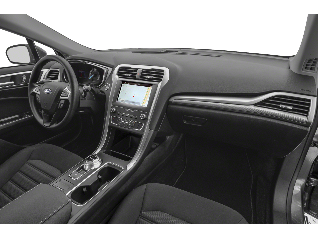 Agate Black 2019 Ford Fusion SEL FWD 6-Speed Automatic 1.5L EcoBoost Fusion SEL, 4D Sedan, 1.5L EcoBoost, 6-Speed Automatic, FWD, Agate Black, Ebony, 11 Speakers, 4-Wheel Disc Brakes, ABS brakes, ActiveX Heated Bucket Seats, Adaptive Cruise Control w/Stop & Go, Air Conditioning, Alloy wheels, AM/FM radio: SiriusXM, AppLink/Apple CarPlay and Android Auto, Auto High-beam Headlights, Auto Stop-Start Technology, Auto-dimming door mirrors, Auto-dimming Rear-View mirror, Automatic temperature control, Brake assist, Bumpers: body-color, Compass, Delay-off headlights, Driver door bin, Driver vanity mirror, Dual front impact airbags, Dual front side impact airbags, Electronic Stability Control, Emergency communication system: 911 Assist, Equipment Group 200A, Exterior Parking Camera Rear, Four wheel independent suspension, Front anti-roll bar, Front Bucket Seats, Front Center Armrest, Front dual zone A/C, Front reading lights, Fully automatic headlights, Garage door transmitter, Heated door mirrors, Heated front seats, Illuminated entry, Knee airbag, Lane Departure Warning System, Low tire pressure warning, Memory seat, Occupant sensing airbag, Outside temperature display, Overhead airbag, Overhead console, Panic alarm, Passenger door bin, Passenger vanity mirror, Power door mirrors, Power driver seat, Power passenger seat, Power steering, Power windows, Radio data system, Radio: AM/FM/MP3 Stereo, Rain sensing wipers, Rear anti-roll bar, Rear Parking Sensors, Rear reading lights, Rear seat center armrest, Rear window defroster, Remote keyless entry, Security system, SiriusXM Radio, Speed control, Speed-sensing steering, Speed-Sensitive Wipers, Split folding rear seat, Steering wheel mounted audio controls, SYNC 3 Communications & Entertainment System, Tachometer, Telescoping steering wheel, Tilt steering wheel, Traction control, Trip computer, Turn signal indicator mirrors, Variably intermittent wipers, Voice-Activated Touchscreen Navigation System, Wheels: 18 Premium-Painted Aluminum.