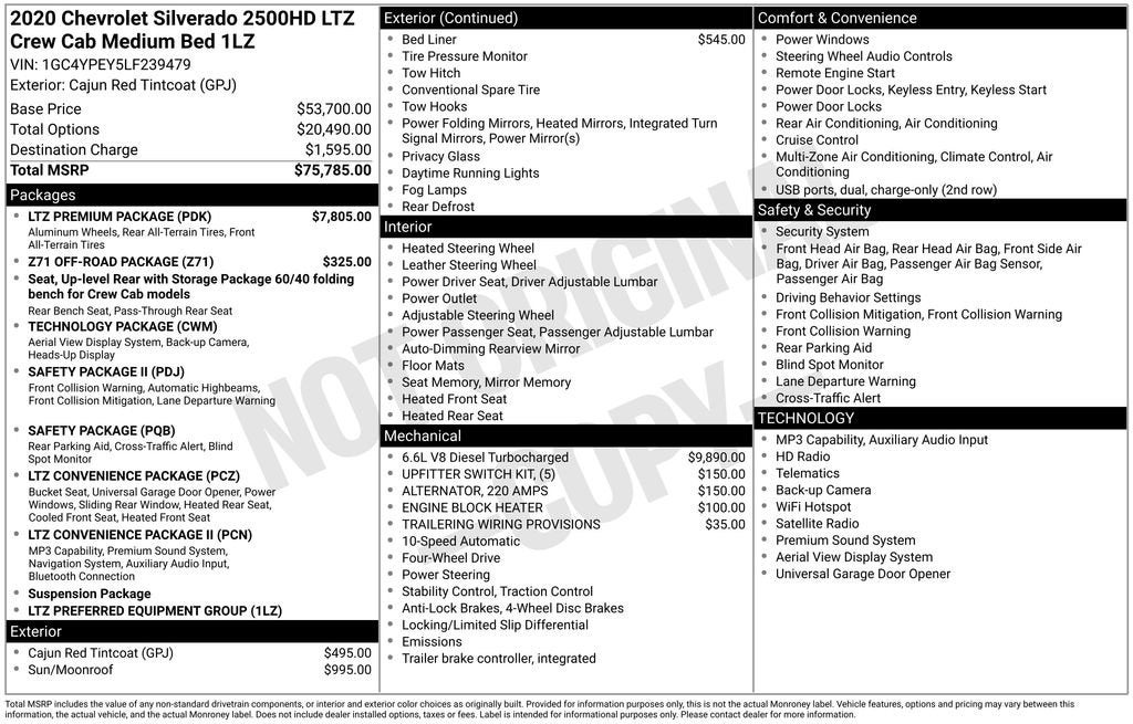 Cajun Red Tintcoat 2020 Chevrolet Silverado 2500HD LTZ BLACK WIDOW PACKAGE. CARFAX One-Owner. Odometer is 64536 miles below market average!