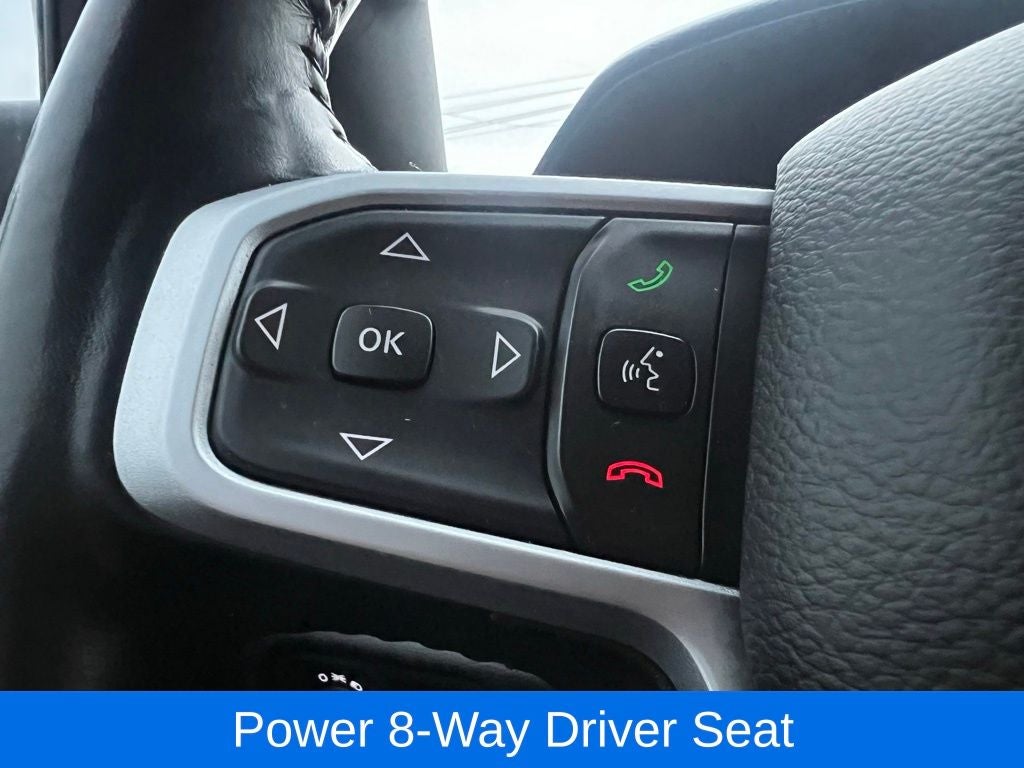 **HEATED SEATS, **REAR BACK-UP CAMERA, **Bluetooth®, **REMOTE START, **APPLE CARPLAY/ANDROID AUTO, 115V Auxiliary Power Outlet, 115V Auxiliary Rear Power Outlet, 2 USB Full Function/Charge Only Media Hub, 2nd Row In Floor Storage Bins, 3 Rear Seat Head Restraints, 4 Way Front Headrests, 400W Inverter, Air Conditioning ATC w/Dual Zone Control, Anti-Spin Differential Rear Axle, Auto-Dimming Exterior Driver Mirror, Auto-Dimming Rear-View Mirror, Big Horn IP Badge, Big Horn Level 2 Equipment Group, Black Exterior Truck Badging, Black Headlamp Bezels, Black Interior Accents, Black Premium Power Mirrors, Body Color Door Handles, Body Color Exterior Mirrors, Body Color Front Bumper, Body Color Premium Power Mirrors, Body Color Rear Bumper w/Step Pads, Bucket Seats, Class IV Receiver Hitch, Dampened Tailgate, Deluxe Cloth Bucket Seats, Dual Exhaust w/Black Tips, Exterior Mirrors Courtesy Lamps, Exterior Mirrors w/Memory, Foam Bottle Insert (Door Trim Panel), Front fog lights, Front Seat Back Map Pockets, Full Length Floor Console, Glove Box Lamp, Grille Surround 1 Black Texture 2 Black, Heated door mirrors, Heated Front Seats, Heated Steering Wheel, Manual Adjust 4-Way Front Passenger Seat, Night Edition, ParkSense Front/Rear Park Assist w/Stop, ParkView Rear Back-Up Camera, Power 4-Way Driver Lumbar Adjust, Power 8-Way Driver Seat, Power Adjustable Pedals, Power-Folding Mirrors, Radio: Uconnect 4 w/8.4 Display, Rear 60/40 Folding Seat, Rear Dome w/On/Off Switch Lamp, Rear Power Sliding Window, Rear Window Defroster, Security Alarm, SiriusXM Satellite Radio, Sun Visors w/Illuminated Vanity Mirrors, Universal Garage Door Opener, Wheels: 20 x 9.0 Premium Paint/Polished, 3.21 Rear Axle Ratio, 4-Wheel Disc Brakes, 48V Belt Starter Generator, 6 Speakers, ABS brakes, Air Conditioning, Alloy wheels, AM/FM radio, Big Horn Badge, Brake assist, Bumpers: chrome, Cloth Bench Seat, Compass, Delay-off headlights, Driver door bin, Dual front impact airbags, Dual front side impact airbags, Electronic Stability Control, Engine Calibration Flash (DISC), Front & Rear Rubber Floor Mats, Front anti-roll bar, Front Center Armrest w/Storage, Front reading lights, Front wheel independent suspension, Fully automatic headlights, GPS Antenna Input, Illuminated entry, Leather steering wheel, Low tire pressure warning, Occupant sensing airbag, Outside temperature display, Overhead airbag, Overhead console, Panic alarm, Passenger door bin, Passenger vanity mirror, Power door mirrors, Power steering, Power windows, Quick Order Package 27Z Big Horn, Radio data system, Radio: Uconnect 3 w/5 Display, Rear anti-roll bar, Rear seat center armrest, Rear step bumper, Rear Wheelhouse Liners, Remote keyless entry, Remote Start System, Speed control, Split folding rear seat, Steering wheel mounted audio controls, Tachometer, Telescoping steering wheel, Tilt steering wheel, Traction control, Trip computer, Variably intermittent wipers, Voltmeter, Wheels: 18 x 8 Cast-Aluminum Painted, 115V Auxiliary Power Outlet, 115V Auxiliary Rear Power Outlet, 2 USB Full Function/Charge Only Media Hub, 2nd Row In Floor Storage Bins, 3 Rear Seat Head Restraints, 4 Way Front Headrests, 400W Inverter, Air Conditioning ATC w/Dual Zone Control, Anti-Spin Differential Rear Axle, Auto-Dimming Exterior Driver Mirror, Auto-Dimming Rear-View Mirror, Big Horn IP Badge, Big Horn Level 2 Equipment Group, Black Exterior Truck Badging, Black Headlamp Bezels, Black Interior Accents, Black Premium Power Mirrors, Body Color Door Handles, Body Color Exterior Mirrors, Body Color Front Bumper, Body Color Premium Power Mirrors, Body Color Rear Bumper w/Step Pads, Bucket Seats, Class IV Receiver Hitch, Dampened Tailgate, Deluxe Cloth Bucket Seats, Dual Exhaust w/Black Tips, Exterior Mirrors Courtesy Lamps, Exterior Mirrors w/Memory, Foam Bottle Insert (Door Trim Panel), Front fog lights, Front Seat Back Map