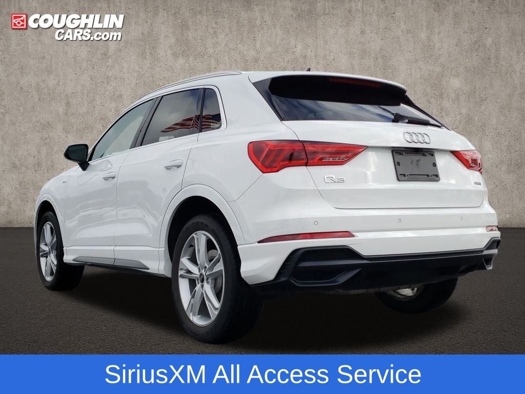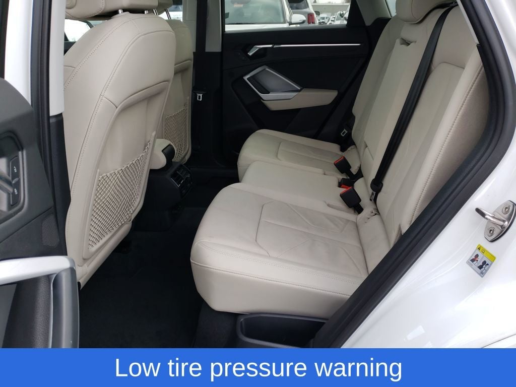 Ibis White 2021 Audi Q3 Premium S Line quattro quattro 8-Speed Automatic with Tiptronic 2.0L 4-Cylinder TFSI Q3 Premium S Line quattro, 4D Sport Utility, 2.0L 4-Cylinder TFSI, 8-Speed Automatic with Tiptronic, quattro, Ibis White, Beige Leather, 10 Speakers, 19 Wheel Package, 3.533 Axle Ratio, 4-Wheel Disc Brakes, ABS brakes, Air Conditioning, Alarm w/Motion Sensor, Alloy wheels, AM/FM radio, Audi Advanced Key, Audi Parking System Plus, Audi Side Assist, Audi smartphone interface (Apple CarPlay/Android Auto), Auto High-beam Headlights, Automatic temperature control, Brake assist, Bumpers: body-color, Convenience Package, Delay-off headlights, Driver door bin, Driver vanity mirror, Dual front impact airbags, Dual front side impact airbags, Electronic Stability Control, Exterior Parking Camera Rear, Four wheel independent suspension, Frameless Auto-Dimming Interior Mirror w/Compass, Front anti-roll bar, Front Bucket Seats, Front Center Armrest, Front dual zone A/C, Front fog lights, Front reading lights, Fully automatic headlights, Heated door mirrors, Heated Front Bucket Seats, Heated Power-Folding Exterior Mirrors, Illuminated entry, Knee airbag, Leather Seating Surfaces, Leather Shift Knob, Leather steering wheel, LED Interior Lighting Package, Low tire pressure warning, Occupant sensing airbag, Outside temperature display, Overhead airbag, Overhead console, Panic alarm, Passenger door bin, Passenger vanity mirror, Power door mirrors, Power driver seat, Power Liftgate, Power moonroof, Power passenger seat, Power steering, Power windows, Radio data system, Radio: Audi Sound System, Rain sensing wipers, Rear air conditioning, Rear anti-roll bar, Rear fog lights, Rear reading lights, Rear seat center armrest, Rear window defroster, Rear window wiper, Remote keyless entry, SiriusXM All Access Service, Speed control, Speed-sensing steering, Split folding rear seat, Spoiler, Steering wheel mounted audio controls, Tachometer, Telescoping steering wheel, Tilt steering wheel, Traction control, Trip computer, Turn signal indicator mirrors, Variably intermittent wipers.