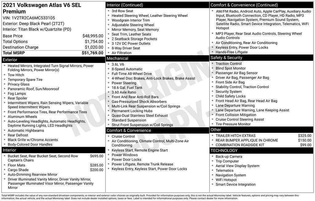 2021 Volkswagen Atlas 3.6L V6 SEL Premium
