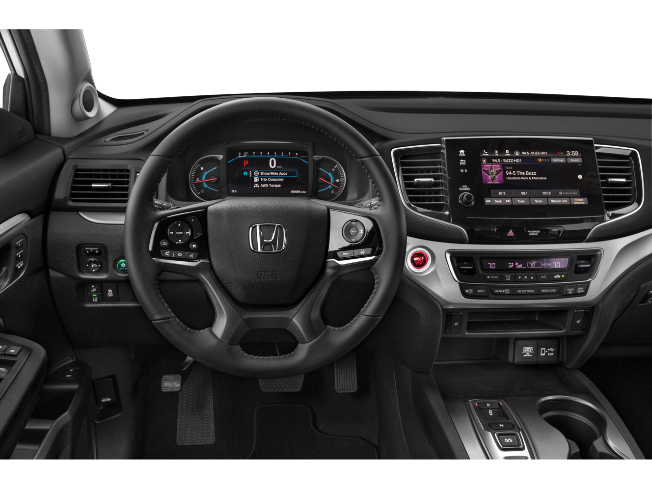 Equipped with AWD, 18 Machine-Finished Alloy Wheels, 3rd row seats: split-bench, 4-Wheel Disc Brakes, 4.33 Axle Ratio, 7 Speakers, A/V remote: CabinControl, ABS brakes, Air Conditioning, Alloy wheels, AM/FM radio: SiriusXM, Apple CarPlay/Android Auto, Auto High-beam Headlights, Auto-dimming Rear-View mirror, Automatic temperature control, Blind Spot Information (BSI) System warning, Brake assist, Bumpers: body-color, Delay-off headlights, Driver door bin, Driver vanity mirror, Dual front impact airbags, Dual front side impact airbags, Electronic Stability Control, Emergency communication system: HondaLink Assist, Exterior Parking Camera Rear, Forward collision: Collision Mitigation Braking System (CMBS) + FCW mitigation, Four wheel independent suspension, Front anti-roll bar, Front Bucket Seats, Front Center Armrest, Front dual zone A/C, Front fog lights, Front reading lights, Fully automatic headlights, Garage door transmitter: HomeLink, Heated door mirrors, Heated Front Bucket Seats, Heated front seats, Illuminated entry, Lane departure: Lane Keeping Assist System (LKAS) active, Leather Seat Trim, Low tire pressure warning, Memory seat, Occupant sensing airbag, Outside temperature display, Overhead airbag, Overhead console, Panic alarm, Passenger door bin, Passenger vanity mirror, Power door mirrors, Power driver seat, Power Liftgate, Power moonroof, Power passenger seat, Power steering, Power windows, Radio data system, Radio: 215-Watt Audio System, Rear air conditioning, Rear anti-roll bar, Rear reading lights, Rear seat center armrest, Rear window defroster, Rear window wiper, Reclining 3rd row seat, Remote keyless entry, Security system, Speed control, Speed-sensing steering, Speed-Sensitive Wipers, Split folding rear seat, Spoiler, Steering wheel mounted audio controls, Tachometer, Telescoping steering wheel, Tilt steering wheel, Traction control, Trip computer, Turn signal indicator mirrors, and Variably intermittent wipers.