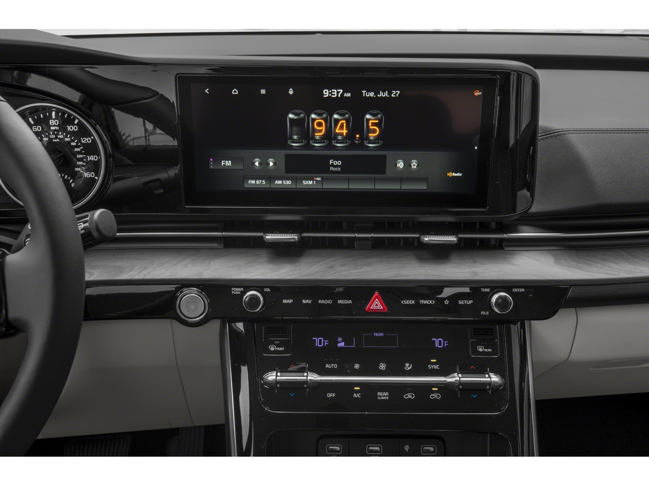 - Radio w/Seek-Scan, Clock, Speed Compensated Volume Control, Steering Wheel Controls, Voice Activation and UVO3 External Memory Control
