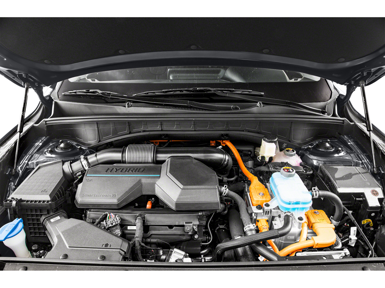 Equipped with 1.6L I4 DGI Hybrid Turbocharged DOHC 16V LEV3-ULEV70, 3rd row seats: split-bench, 4-Wheel Disc Brakes, 6 Speakers, ABS brakes, Air Conditioning, Alloy wheels, AM/FM radio: SiriusXM, Apple CarPlay & Android Auto, Auto High-beam Headlights, Automatic temperature control, Axle Ratio: 3.510, Brake assist, Bumpers: body-color, Carpeted Floor Mats, Delay-off headlights, Driver door bin, Driver vanity mirror, Dual front impact airbags, Dual front side impact airbags, Electronic Stability Control, Emergency communication system: UVO Link, Exterior Parking Camera Rear, Four wheel independent suspension, Front anti-roll bar, Front Bucket Seats, Front Center Armrest, Front dual zone A/C, Front fog lights, Front reading lights, Fully automatic headlights, Heated door mirrors, Heated Front Bucket Seats, Heated front seats, Illuminated entry, Knee airbag, Leather steering wheel, Low tire pressure warning, Navigation System, Occupant sensing airbag, Outside temperature display, Overhead airbag, Overhead console, Panic alarm, Passenger door bin, Passenger vanity mirror, Power door mirrors, Power driver seat, Power Liftgate, Power steering, Power windows, Radio data system, Radio: AM/FM Audio System, Rear air conditioning, Rear anti-roll bar, Rear reading lights, Rear window defroster, Rear window wiper, Remote keyless entry, Roof rack: rails only, Security system, Smart Key w/ Push Button and Remote Start, Speed control, Speed-sensing steering, Split folding rear seat, Spoiler, Steering wheel mounted audio controls, SynTex Artificial Leather Seat Trim, Tachometer, Telescoping steering wheel, Tilt steering wheel, Traction control, Trip computer, Turn signal indicator mirrors, Variably intermittent wipers, and Wheels: 19 Machine-Finished Alloy.