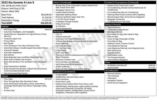 Wolf Gray 2022 Kia Sorento S CARFAX One-Owner.