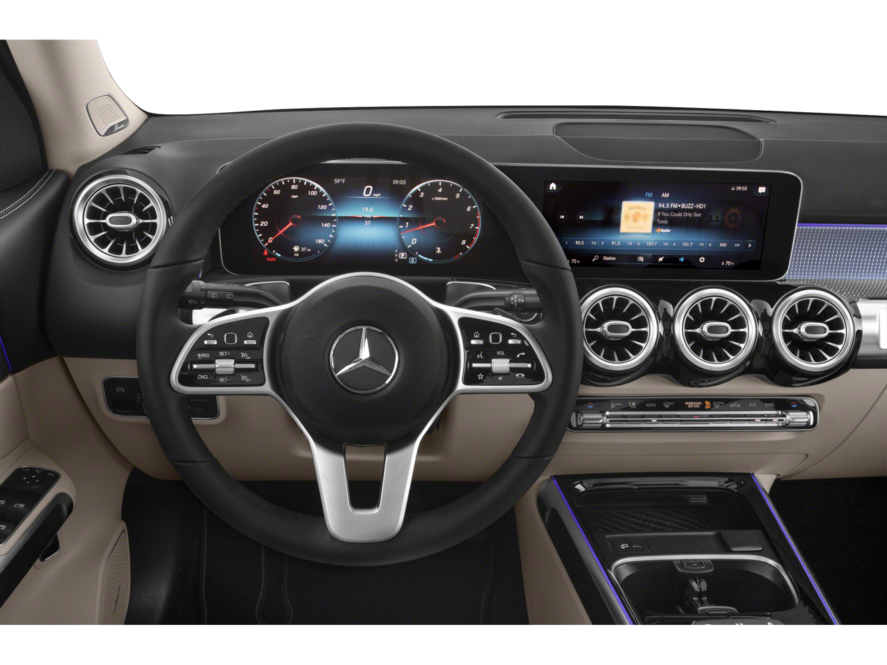 - Radio: Mercedes-Benz User Experience (MBUX) -inc: 7" touchscreen multimedia display, voice control including natural language understanding and keyword activation (Hey Mercedes), Bluetooth® connectivity, Mercedes me connect services w/trial period, 4 USB-C ports (note: adapter will be required to connect to USB-A devices)