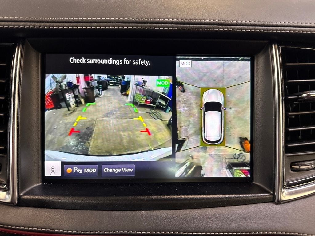 The interior of this QX50 is equally impressive, featuring premium leather-appointed seating, a Bose premium audio system, and a host of advanced technology features. The power driver's seat with memory settings ensures a comfortable and personalized driving experience, while the heated front seats and power moonroof add to the overall sense of luxury.