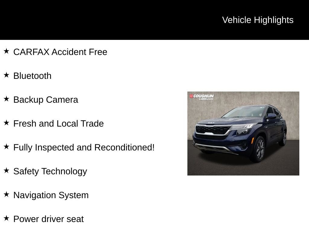 Whether you're commuting to work, embarking on a road trip, or simply running errands, this 2023 Kia Seltos EX is the perfect companion. With its exceptional blend of style, performance, and technology, it's a vehicle that will exceed your expectations and make every journey a pleasure.