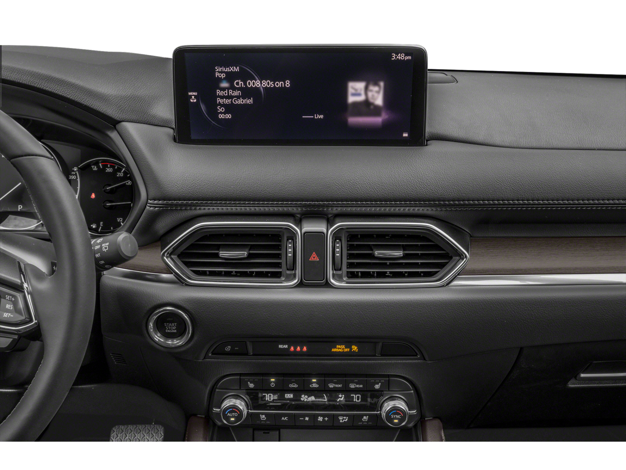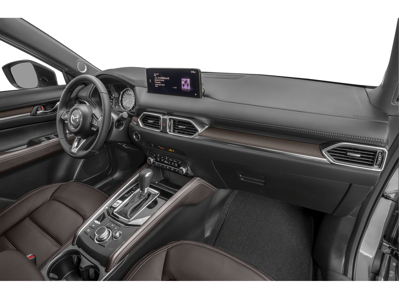 Step inside the cabin, and you'll be greeted by a wealth of premium amenities, including the Nappa leather-trimmed seats, heated and ventilated front buckets, and a heated steering wheel. The Mazda Connect infotainment system with navigation keeps you connected and entertained, while the heads-up display and advanced safety technologies, such as automatic high-beam headlights and rain-sensing wipers, provide added peace of mind on the road.