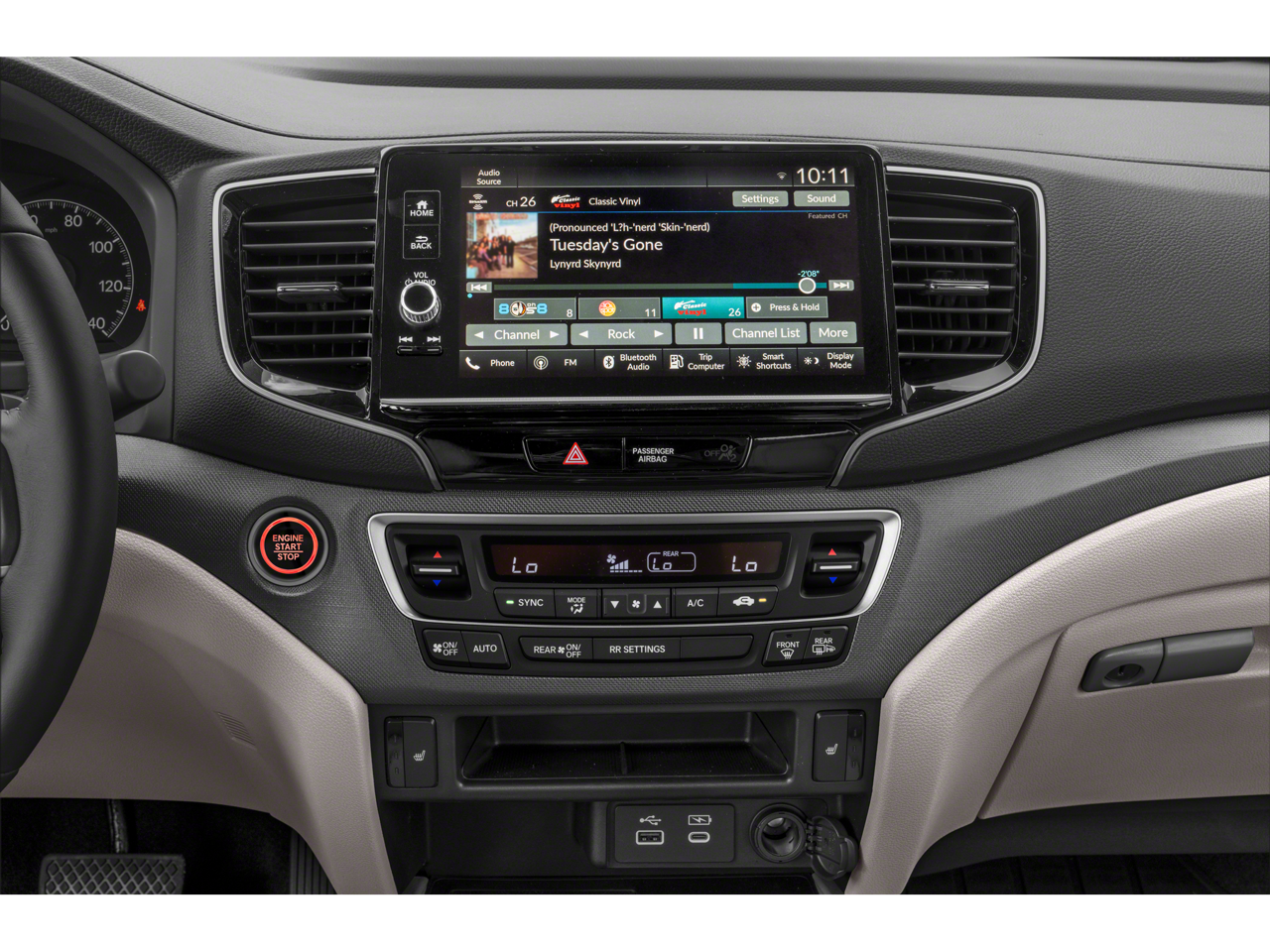• Radio: 215-Watt Audio System w/7 Speakers -inc: subwoofer, 9" color touchscreen, Bluetooth® streaming audio, Speed-Sensitive Volume Compensation (SVC), wireless Apple CarPlay/Android Auto compatibility, 2.5A USB-A data port in front console, 3.0A USB-C charging port in front console and HondaLink