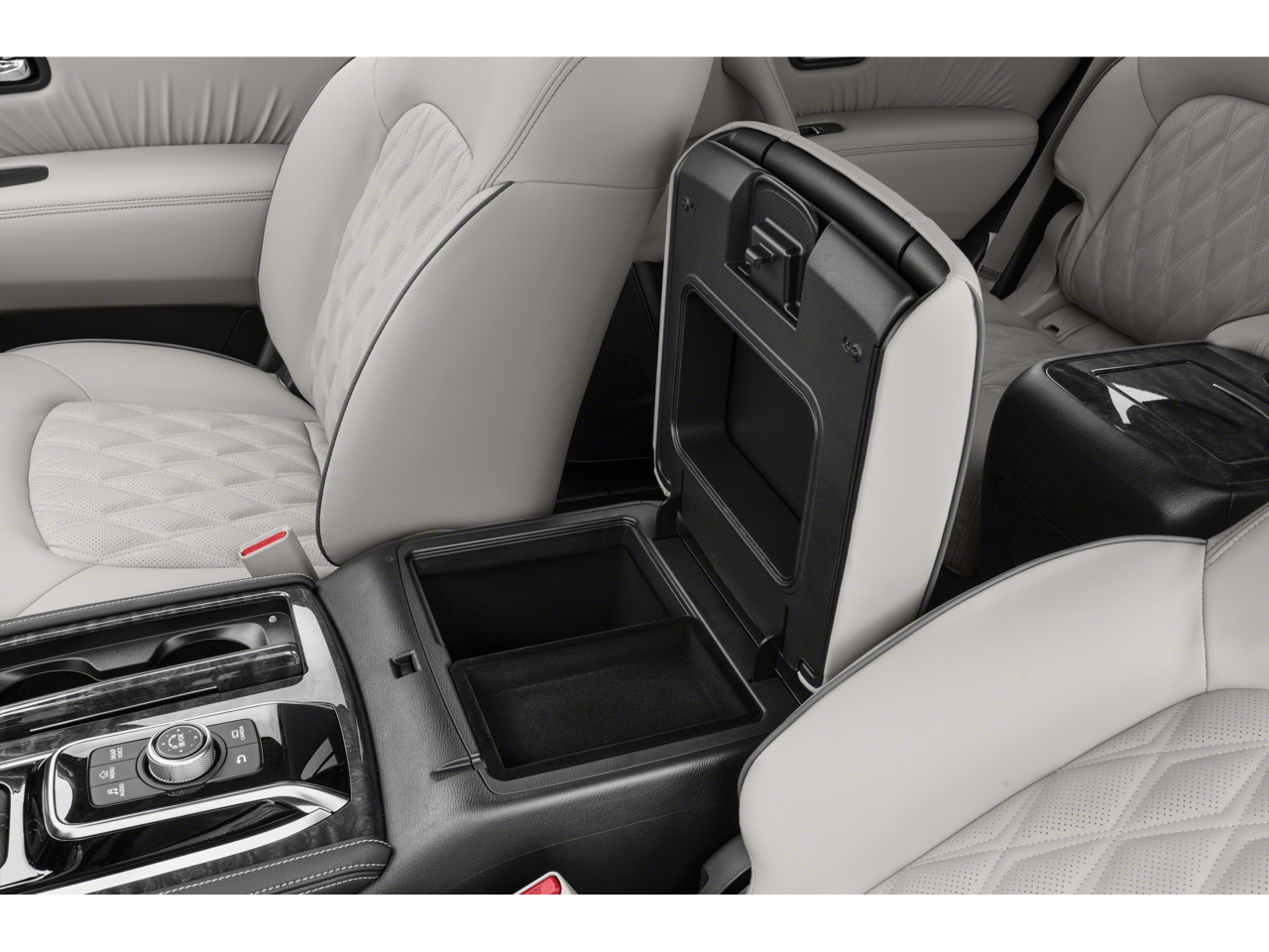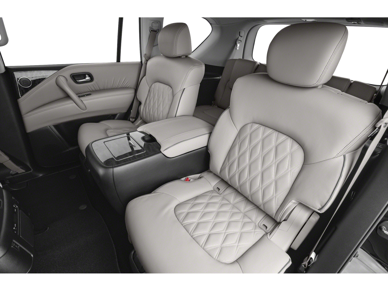 Equipped with Captain's Chairs Package (2nd Row Captain's Chairs and 2nd Row Center Console w/Padded Armrest), Cargo Package, 13 Speakers, 2.937 Axle Ratio, 3rd Row Carpeted Floor Mats - Captain Seat, 3rd row seats: split-bench, 4-Wheel Disc Brakes, ABS brakes, Air Conditioning, Alloy wheels, AM/FM radio: SiriusXM, Anti-whiplash front head restraints, Auto High-beam Headlights, Auto tilt-away steering wheel, Auto-dimming door mirrors, Auto-dimming Rear-View mirror, Auto-leveling suspension, Automatic temperature control, Brake assist, Bumpers: body-color, Climate-Controlled Front Bucket Seats, Delay-off headlights, Driver door bin, Driver vanity mirror, Dual front impact airbags, Dual front side impact airbags, Electronic Stability Control, Emergency communication system: NissanConnect Services, Exterior Parking Camera Rear, Four wheel independent suspension, Front anti-roll bar, Front Bucket Seats, Front Center Armrest, Front dual zone A/C, Front fog lights, Front reading lights, Fully automatic headlights, Garage door transmitter: HomeLink, Heated door mirrors, Heated front seats, Heated rear seats, Heated steering wheel, HVAC memory, Illuminated entry, Illuminated Kick Plates, Illuminated Scuff Plate, Knee airbag, Leather Shift Knob, Leather steering wheel, Low tire pressure warning, Memory seat, Navigation System, Occupant sensing airbag, Outside temperature display, Overhead airbag, Overhead console, Panic alarm, Passenger door bin, Passenger vanity mirror, Power door mirrors, Power driver seat, Power Liftgate, Power moonroof, Power passenger seat, Power steering, Power windows, Quilted Leather Seat Trim, Radio: NissanConnect w/SiriusXM, Rain sensing wipers, Rear air conditioning, Rear anti-roll bar, Rear reading lights, Rear seat center armrest, Rear window defroster, Rear window wiper, Reclining 3rd row seat, Remote keyless entry, Roof Rail Cross Bars - Gun Metal, Security system, Speed control, Speed-sensing steering, Speed-Sensitive Wipers, Split folding rear seat, Spoiler, Steering wheel memory, Steering wheel mounted audio controls, Tachometer, Telescoping steering wheel, Tilt steering wheel, Traction control, Trip computer, Turn signal indicator mirrors, Variably intermittent wipers, Ventilated front seats, Voltmeter, and Wheels: 22 x 8J Machine-Faced w/Tinted Clear Coat.