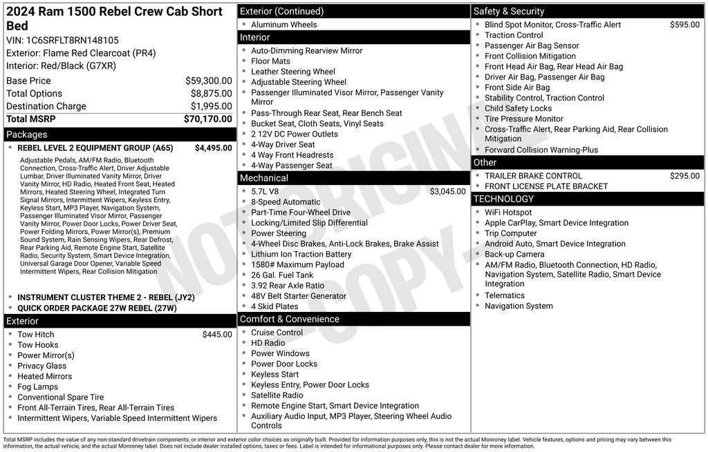 Flame Red Clearcoat 2024 Ram 1500 Rebel CARFAX One-Owner.