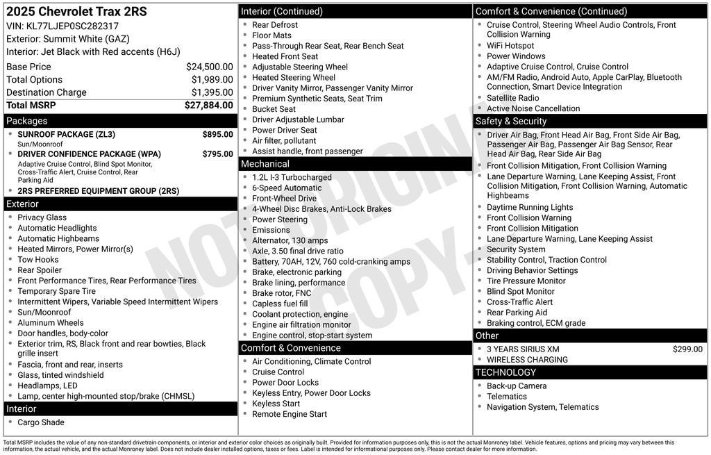 Summit White 2025 Chevrolet Trax 2RS CARFAX One-Owner. Odometer is 1666 miles below market average! 28/32 City/Highway MPG