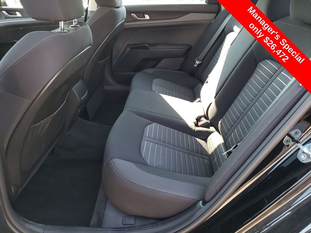 4-Wheel Disc Brakes, 6 Speakers, ABS brakes, Air Conditioning, Alloy wheels, AM/FM radio: SiriusXM, Auto High-beam Headlights, Automatic temperature control, Brake assist, Bumpers: body-color, Cargo Net, Cargo Tray, Carpeted Floor Mats, Cloth Seat Trim, Delay-off headlights, Driver door bin, Driver vanity mirror, Dual front impact airbags, Dual front side impact airbags, Electronic Stability Control, Emergency communication system: Kia Connect (includes 1 year free trial), Four wheel independent suspension, Front anti-roll bar, Front Bucket Seats, Front Center Armrest, Front dual zone A/C, Front reading lights, Fully automatic headlights, Heated door mirrors, Illuminated entry, Knee airbag, Low tire pressure warning, Occupant sensing airbag, Outside temperature display, Overhead airbag, Overhead console, Panic alarm, Passenger door bin, Passenger vanity mirror, Power door mirrors, Power steering, Power windows, Radio data system, Radio: AM/FM Audio System, Rear anti-roll bar, Rear seat center armrest, Rear side impact airbag, Rear window defroster, Remote keyless entry, Security system, Speed control, Speed-sensing steering, Split folding rear seat, Steering wheel mounted audio controls, Tachometer, Telescoping steering wheel, Tilt steering wheel, Traction control, Trip computer, Variably intermittent wipers, and Wheels: 16 x 6.5J Gloss Black Alloy.