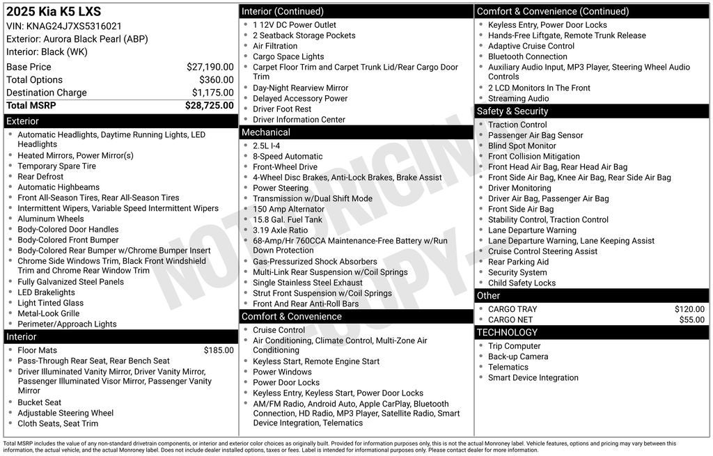 2025 Kia K5 LXS FWD Aurora Black Pearl