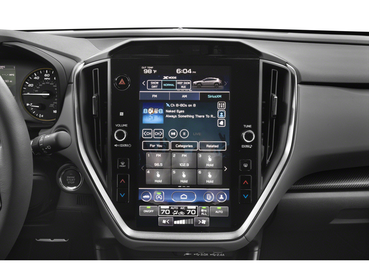 • Radio: Subaru 11.6" Multimedia Plus System -inc: AM/FM stereo, HD Radio, multi-touch gesture high resolution display screen, voice activated controls, Bluetooth® audio streaming and hands-free phone connectivity, Bluetooth® hands-free SMS text messaging connectivity, iPod control capability, SiriusXM w/360L (4 months free trial included/subscription required after), SiriusXM Travel Link (4 months free trial included/subscription required after), smartphone integration: Android Auto and Apple CarPlay w/full screen view and wireless connection, USB and Over The Air (OTA) audio system update, steering wheel audio system and Bluetooth® control switches, 6 speakers (2 dash panel tweeter, 2 front door and 2 rear door), illuminated 3.5mm auxiliary input jack, illuminated front USB A and C input/charge ports and illuminated rear USB A and C charge ports